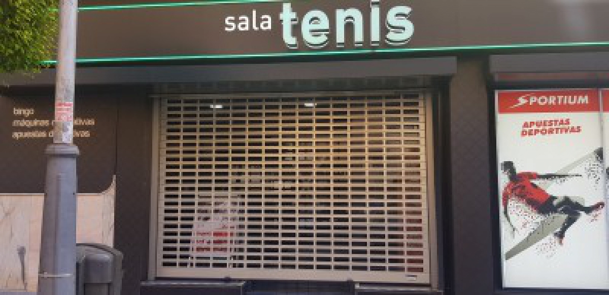 Nuevas instalaciones en la Sala Bingo Tenis en Huelva. Persiana de seguridad en aluminio (modelo troquelado) y puertas automáticas de cristal, tanto en entrada como en varias salas.