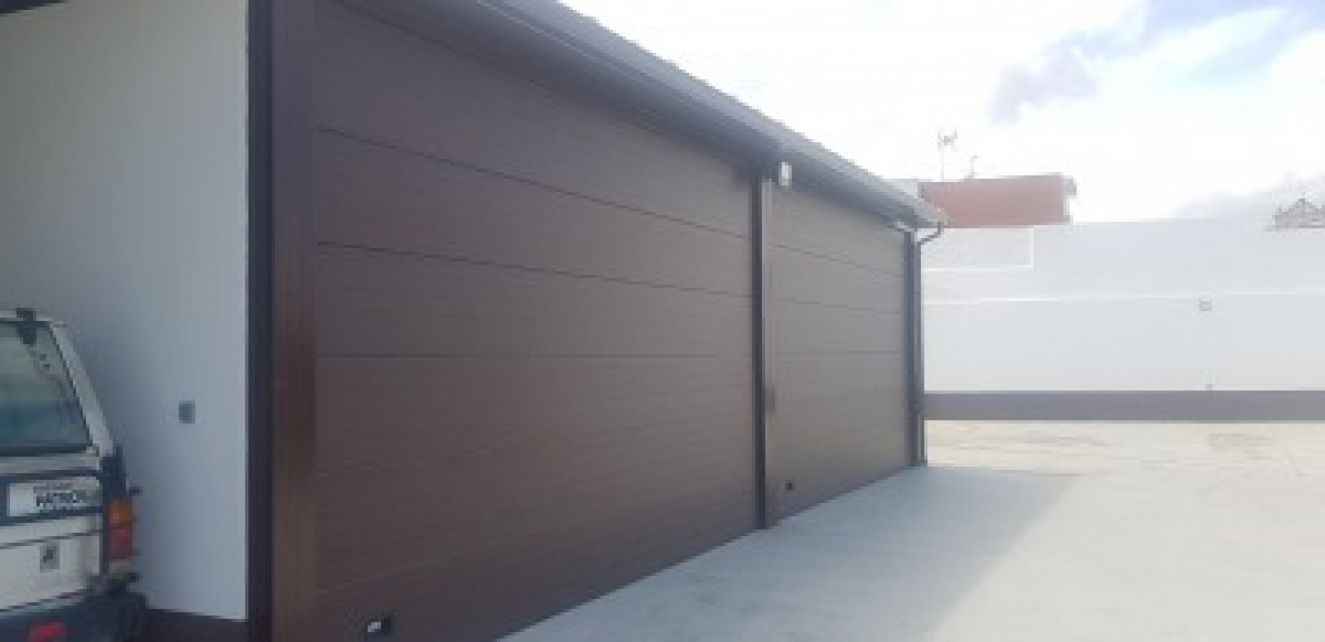 Nueva instalación en Sevilla de puertas seccionales lacadas en marrón ral 8014. Se cierra garajes exteriores y el resultado es magnifico gracias al gran trabajo de la empresa Acesaa Doñana Edificaciones.